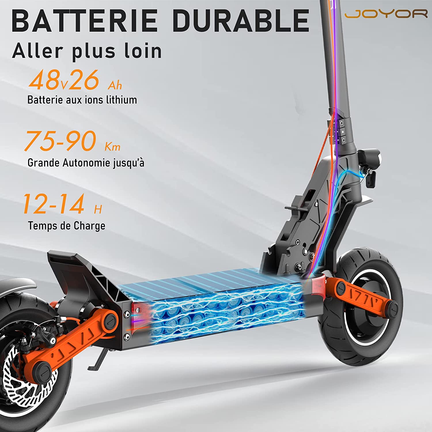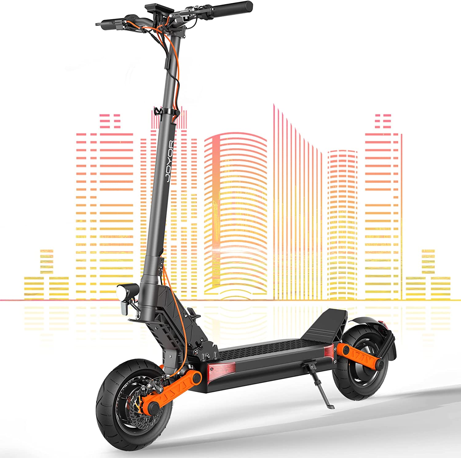 • 🛴 【Facile à plier & porter】La dimension du scooter électrique adulte Joyor S8 S après pliage est de 1120*610*525mm. Le poids net est de 27,7kg, convient aux déplacements quotidiens et pendant les voyages.
